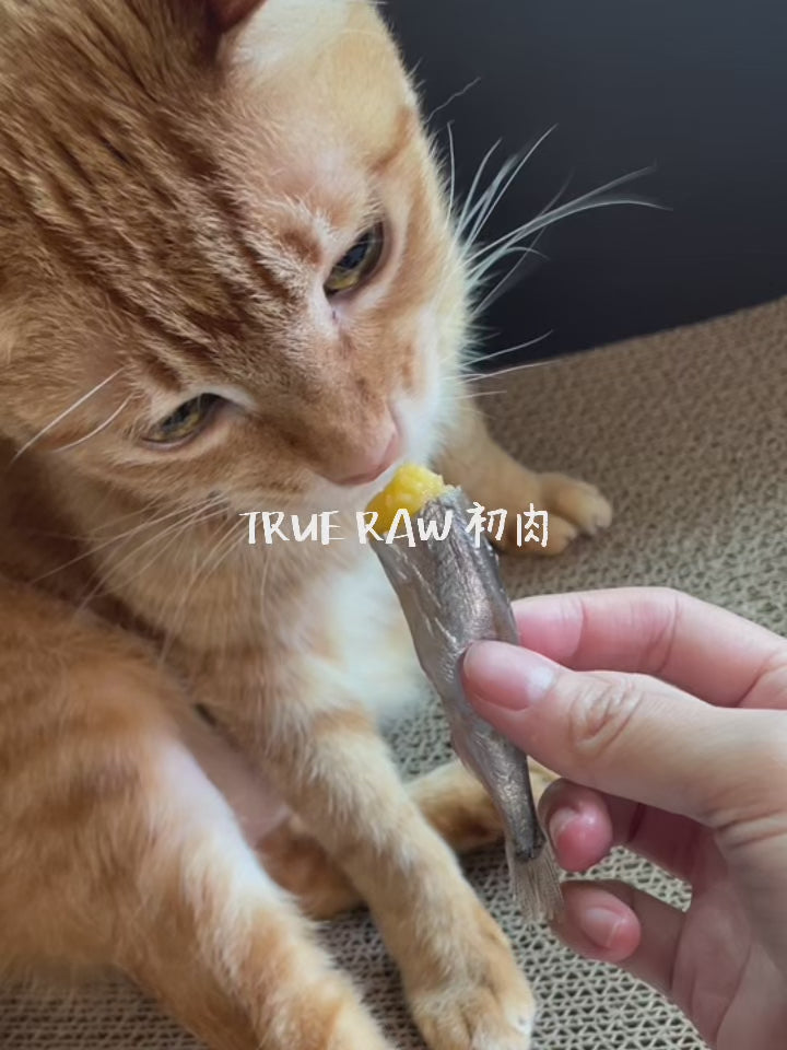 ●貓咪專用-組合內容物:天然營養補充 ▸ 黑殼貽貝100g+藍莓克非爾優格180g+噗滋柳葉魚100g+日本丁香魚75g+阿拉斯加粉鮭100g