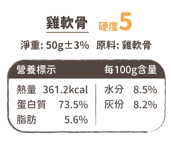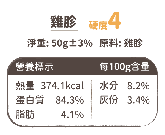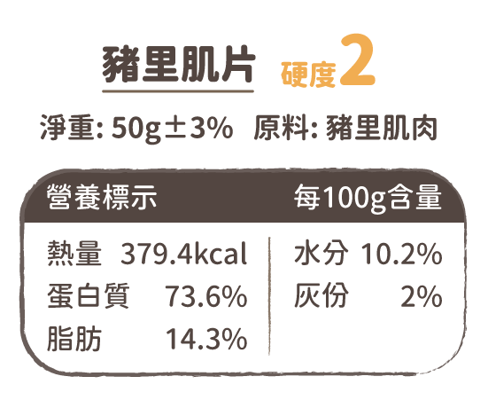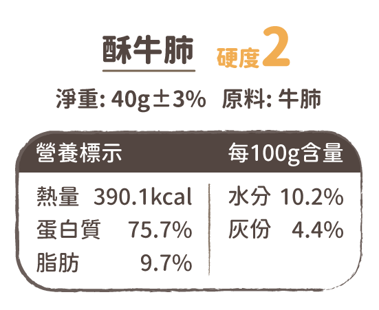 把長期處理原型生肉的經驗,延續到慢烘原肉零食,保留營養與原始風味,不調味、不添加。每款都有硬度標示,挑選更直覺,給毛孩吃得開心,我也更放心。