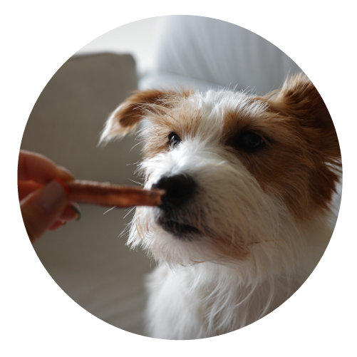 長牙後就可以開始嘗試囉,建議從硬度1的雞薄片開始,剝小片餵食並陪同觀察咀嚼狀況。