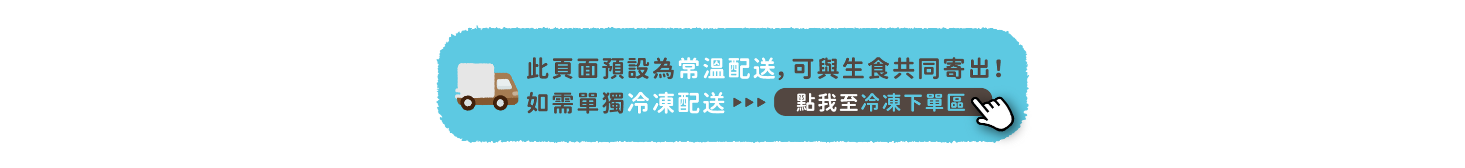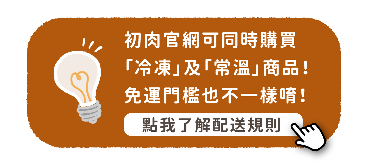 因初肉商品大部分皆為生食,故都是採用冷凍配送方式!此頁面預設為冷凍配送,可與生食共同寄出!