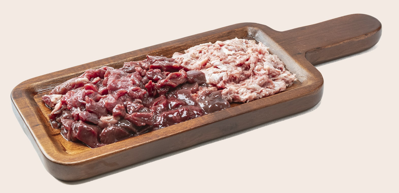 採自PMR完全模擬獵物生食法為基礎,由CertCN認證的美國寵物營養師設計配方,追求動物最原始的營養來源-原型生肉, 符合國際營養標準NRC/AAFCO,專屬毛孩的「天然原型」均衡飲食方式。