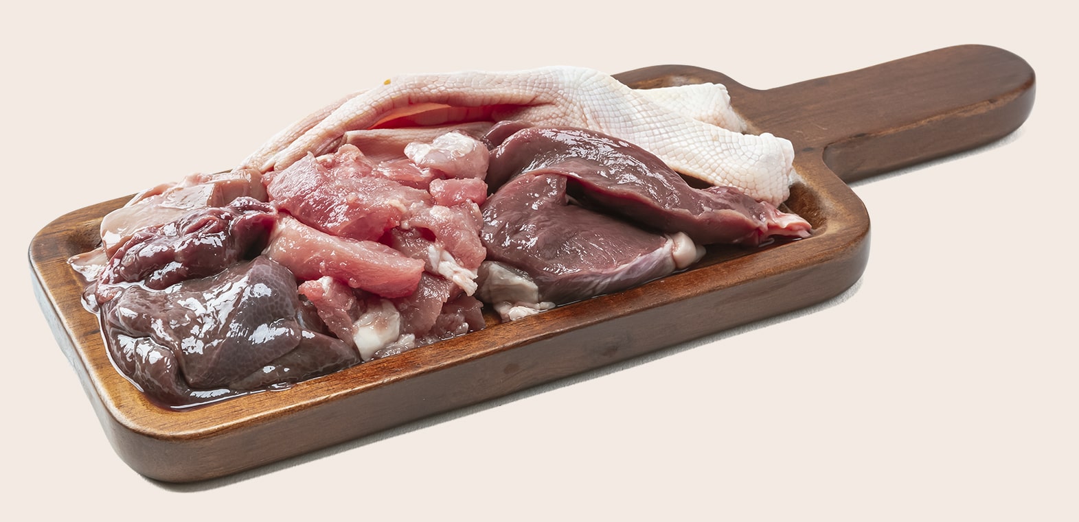 豬後腿肉、豬心、豬肝、豬腎、豬脾、鴨爪。(皆為台灣國產)