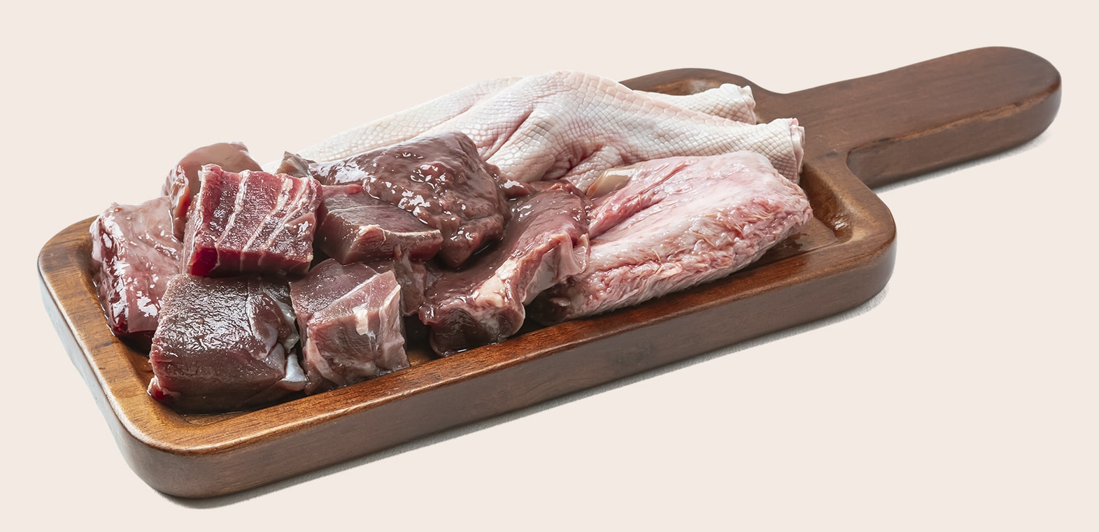 鹿肩胛肉(紐西蘭草飼)、牛心、牛肝、牛腎、牛脾、鴨爪、鴨翅。(骨頭內臟等皆台灣國產)