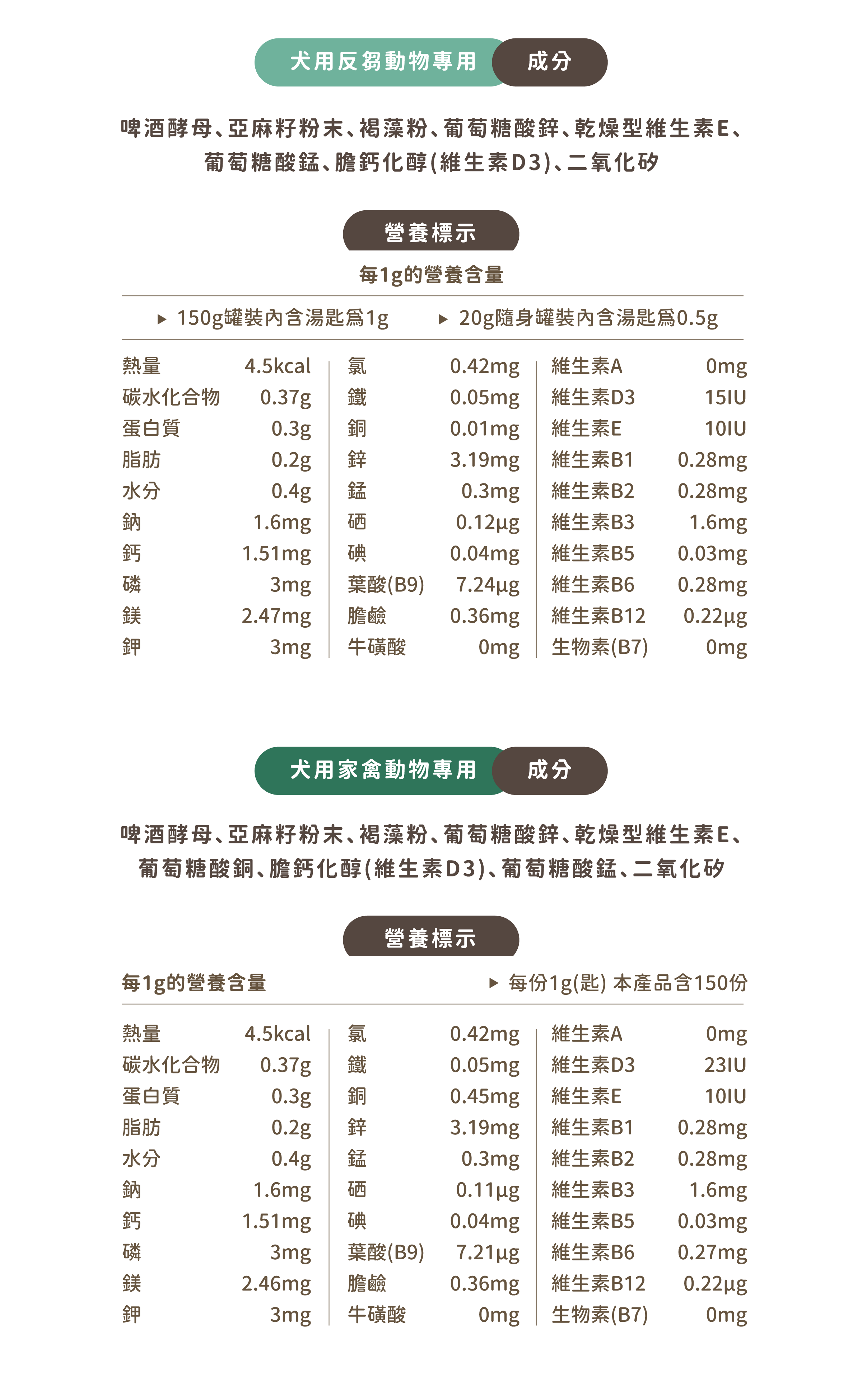 - D3:貓狗對D3有較好的利用率,維持鈣磷平衡、幫助鈣質吸收。
