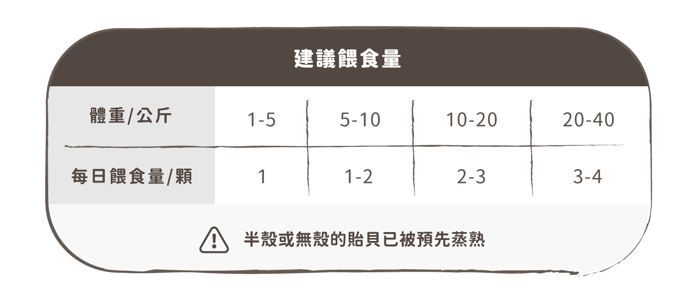 1袋100g±3%約3-5顆,依重量為主,請去殼餵食。