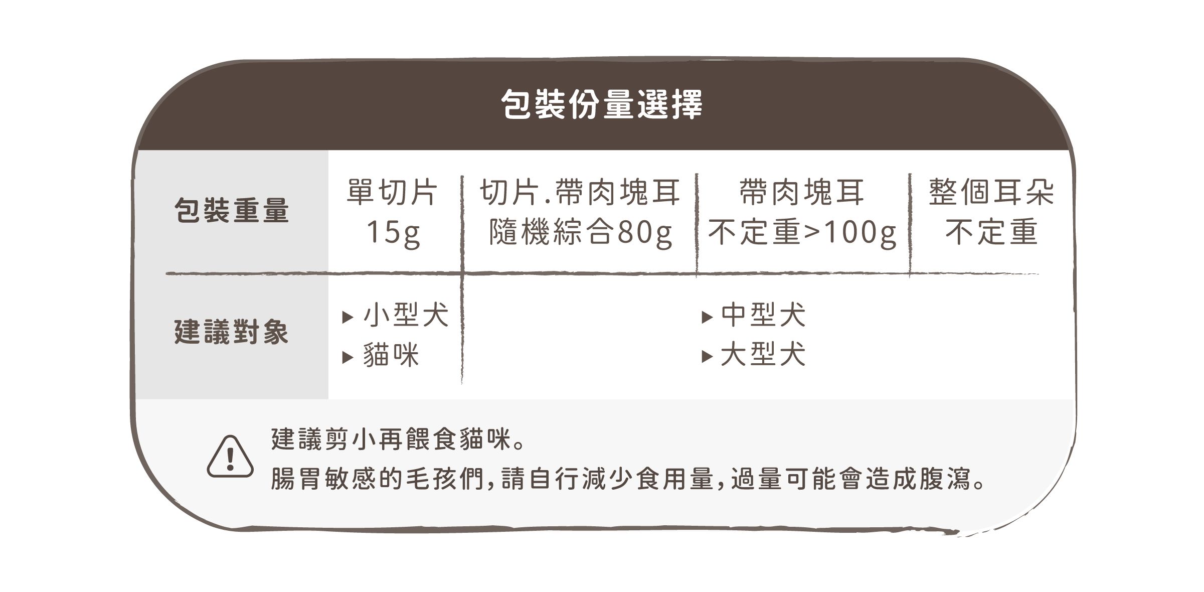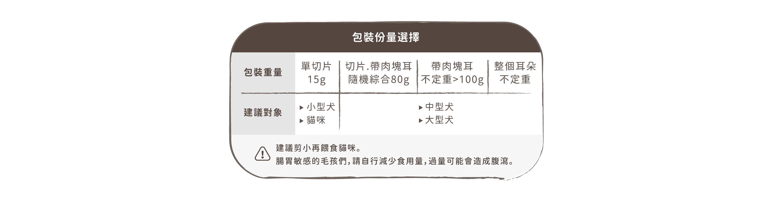 份量/體型:A.中/大型犬|整個耳朵不定重