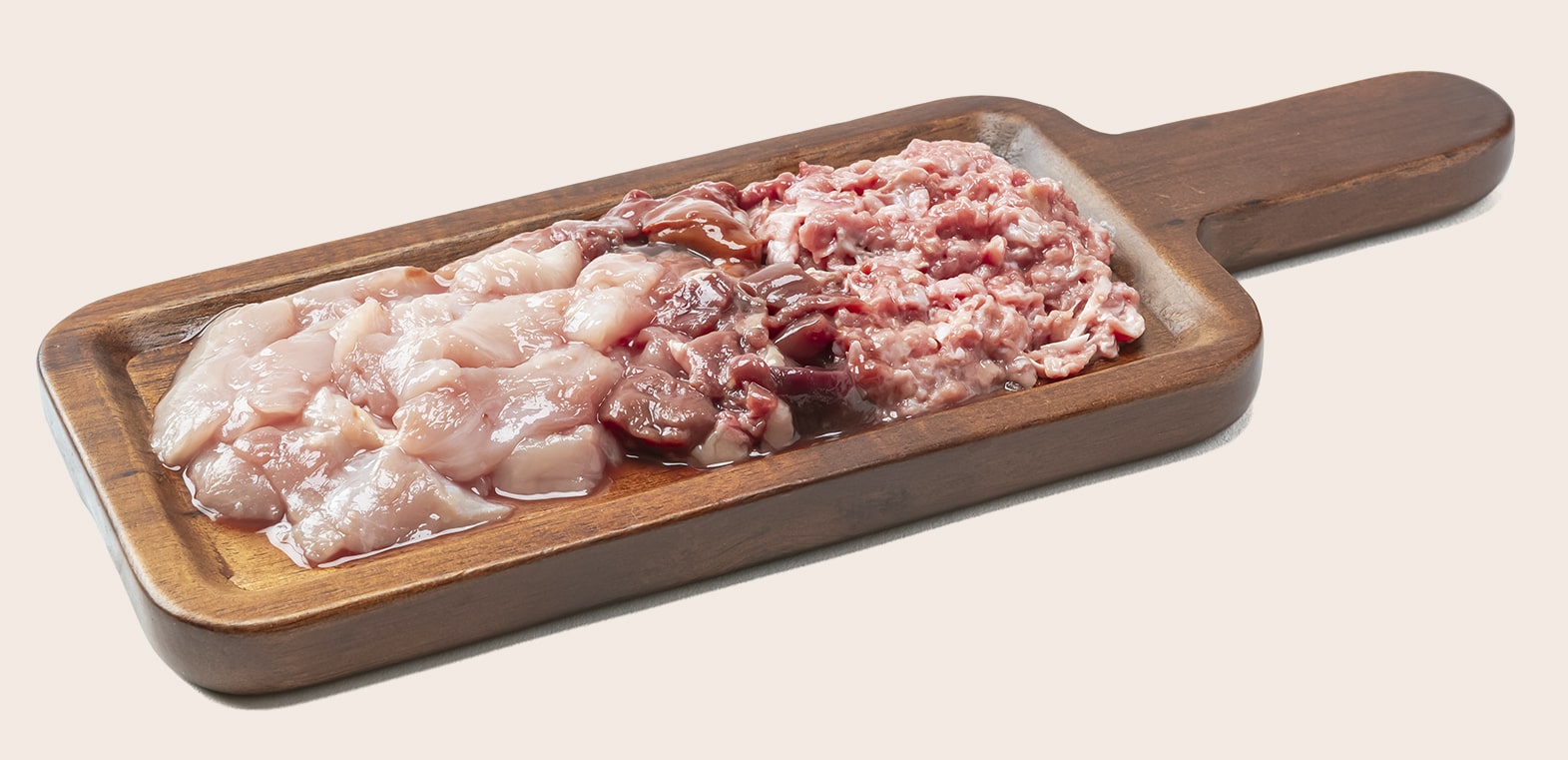 雞胸肉、雞心、雞爪、雞翅、雞肝、牛腎、牛脾。(皆為台灣國產)